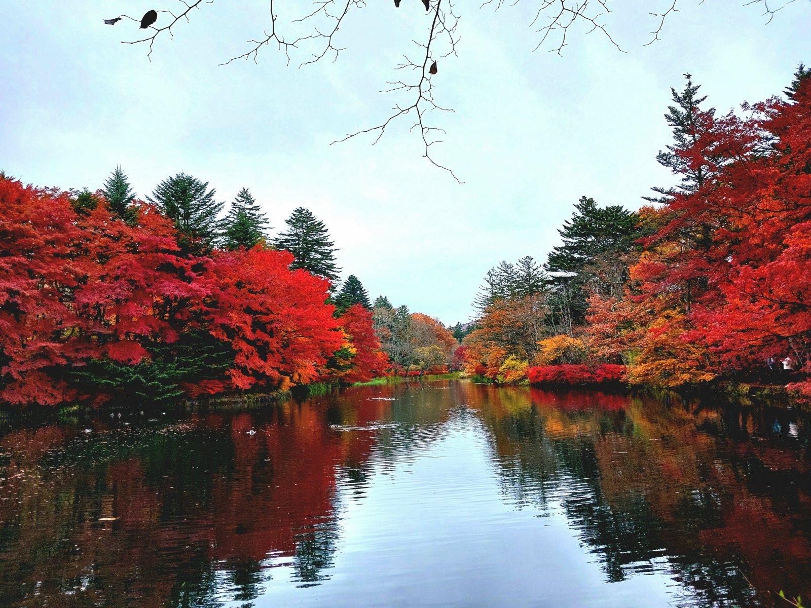 そしてこっちは今日の雲場池、右側の葉っぱが昨日の雨で落ちちゃったね
