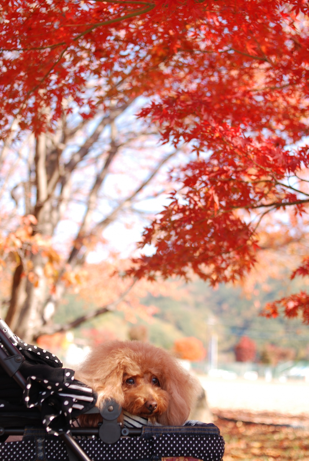 真っ赤な紅葉の中でのFranさんでおはよ💓