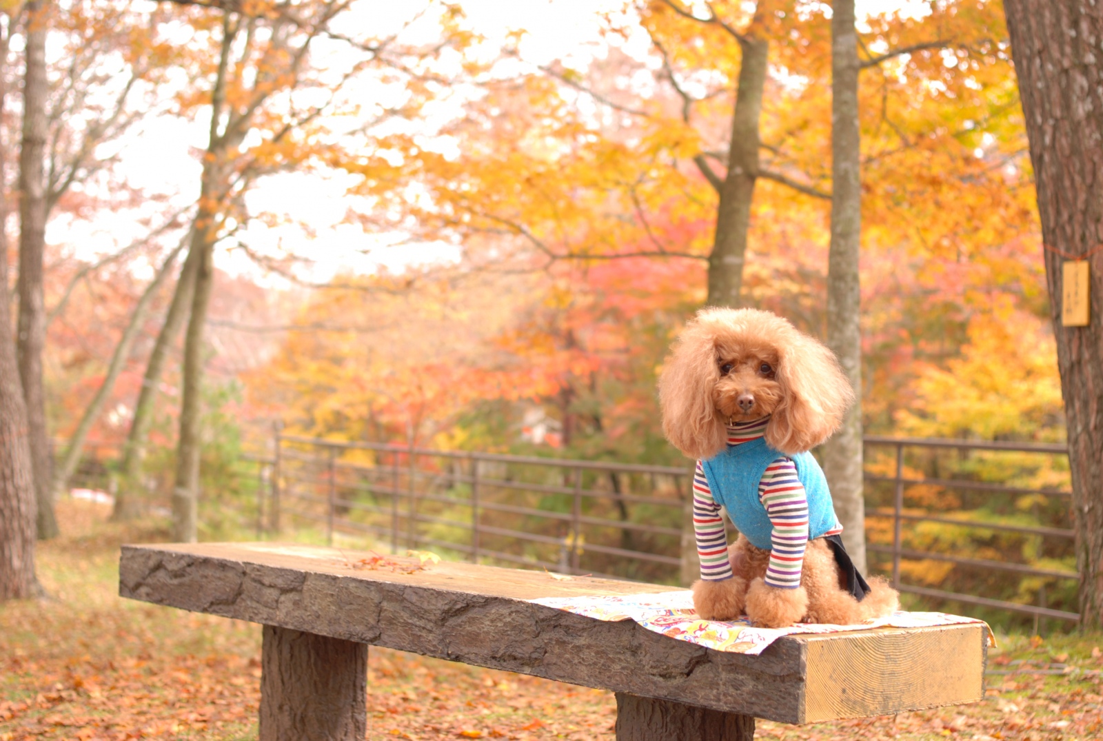 紅葉の中でのFranさんでおはよ💓