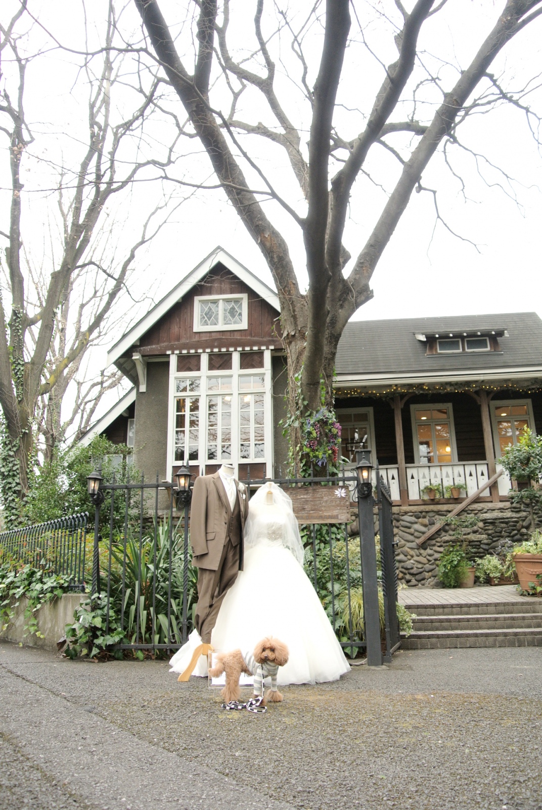 結婚式場の前で