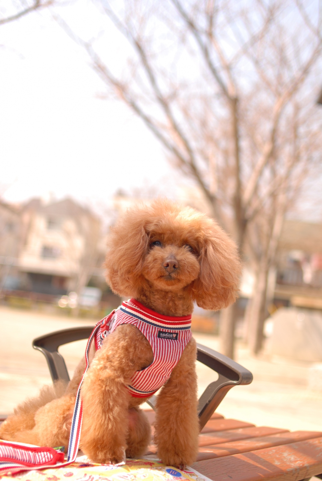 地元公園お散歩でベンチで休憩のFranさんでおはよ💓